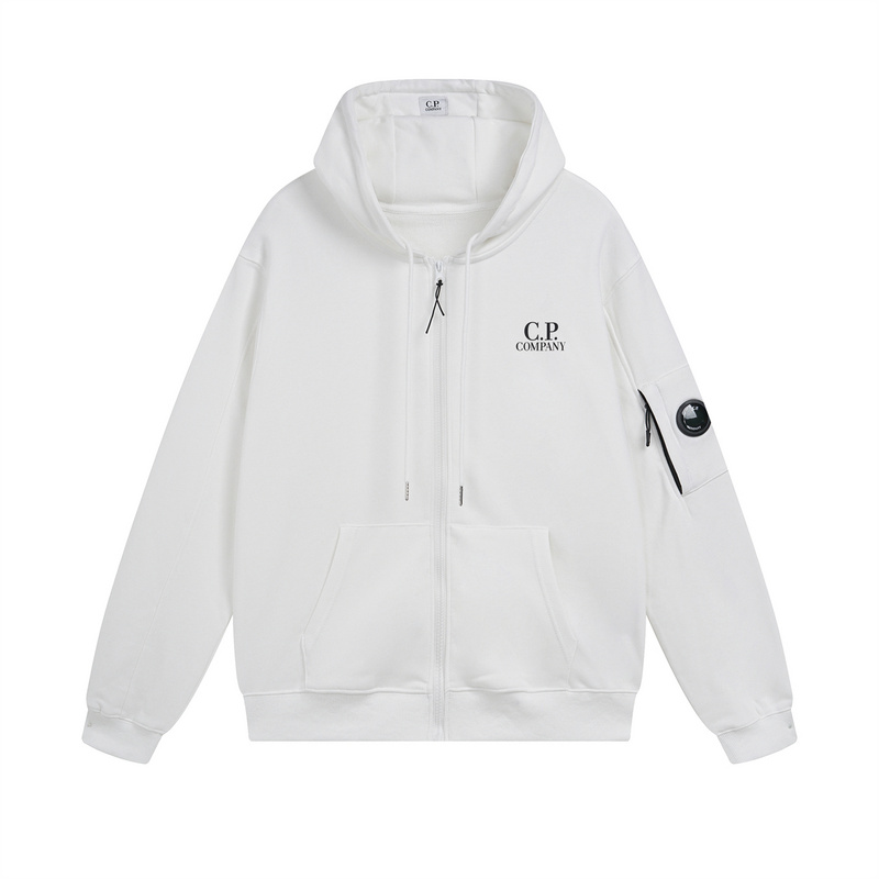 Зип худи на молнии C.P Company в белом цвете с эластичными манжетами