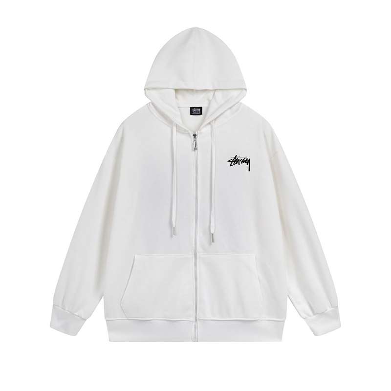 Зип худи свободного кроя от бренда Stussy белое с принтом