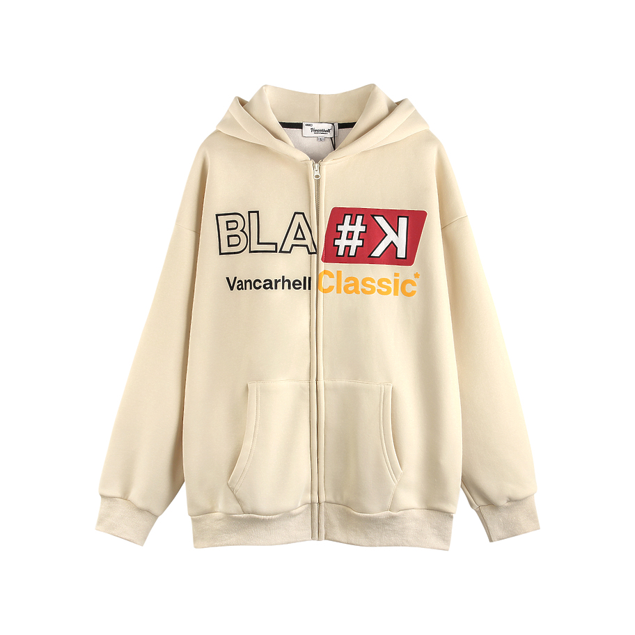Комфортное в носке с принтом зип худи VANCARHELL в кремовом цвете